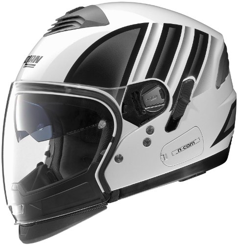 Nolan N43E Trilogy Voyage Helmet (Black/White, Medium) . Crossover design with quick-change accessories allows for customized looks and functions for every ride. Comes with the clear shield, the integrated sun shield, the peak and the removable chin bar. Redesigned GE Lexan chin bar is EPS lined and accepts the new chin curtain (included). Mounted with strong stainless-steel latches, it passes the tests for full-face helmets of the European standard ECE-2205. VPS (Vision Protection System) short dark shield mounted on the inside of the helmet and moving independently from the face shield. Being as thick as a regular outer shield, it provides real eye protection. It can be replaced easily if it gets damaged and is also available in amber, light blue and light smoke for different riding conditions. It is easily operated by a large rubber coated slider on the left side of the helmet. Quick-change shield is optically correct, UV 400, and fitted in an exceptionally large eye port. Several opening positions are possible thanks to the updated shield mechanism. It accepts the Pinlock anti-fog insert (included). The short black peak can be installed in seconds instead of the clear shield. Ready for the N-Com communication system. Lightweight aerodynamic polycarbonate shell with built-in spoiler for improved stability (3.6 pounds with all accessories). Fully removable and washable Clima-Comfort liner is antibacterial, anti-fungal and wicking. Super-efficient JSW top vent with exhaust grid in the rear spoiler; works in conjunction with the air channels along the crown. It is operated by a glove-friendly rubber slider. Microlock (adjustable quick-release) retention system. Velour chin-strap padding.
