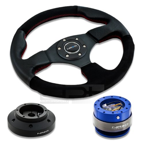 NRG-SRK-101H+012R-S+200BL, NRG Innovations 12.5" 320mm Black Leather Red Stitch Suede Grip Racing Steering Wheel Combo with 6 Hole Short Hub Adapter with Gen 2.0 Blue Quick Release Kit SRK-101H Product Review, Features, Specs, Description, Check Prices Update & More Satisfactory for This Product Reviews !!!